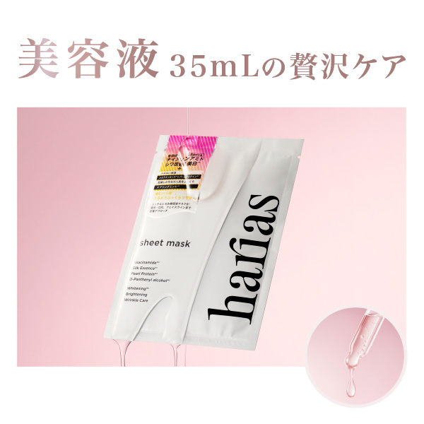 HARIAS シートマスクは、シミを含む肌トラブルやエイジングサインの引き金となるバリア機能の低下に着目。肌コンディションを高めて、外部ダメージに負けない肌へ。