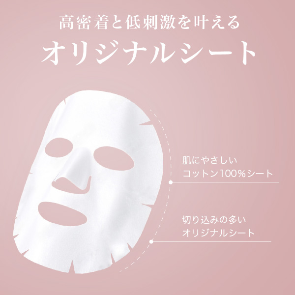 とろみのある美容液を厚みのあるシートに たっぷり35mL含ませました。肌に密着してすみずみまで 潤いを届け、ツヤと透明感※をもたらしキメを整えます。