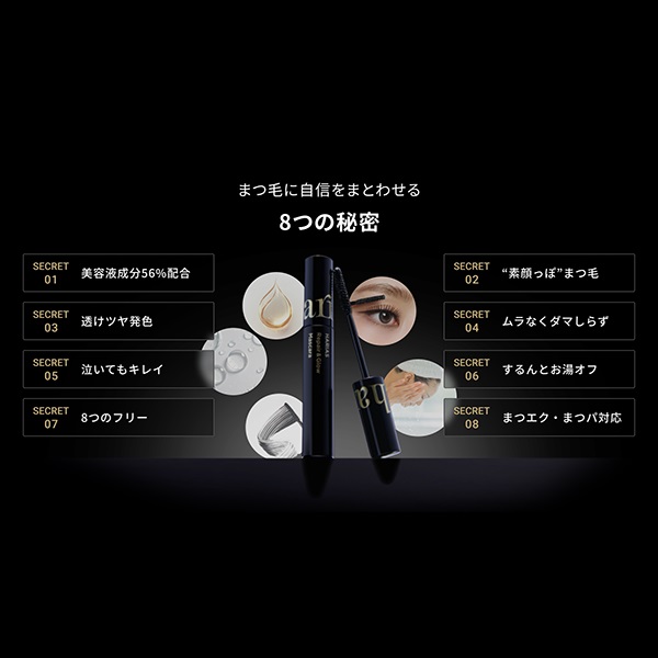 さらに、内側からも外側からもケアしたまつ毛を、マスカラ効果で美まつ毛へとメイク。